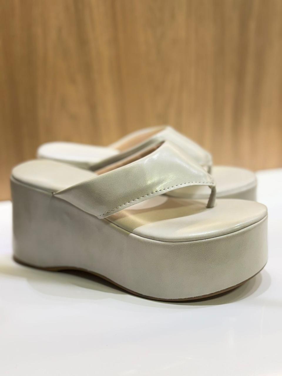 Plataforma Off White, palmilha alcochoada, altura 10 cm.