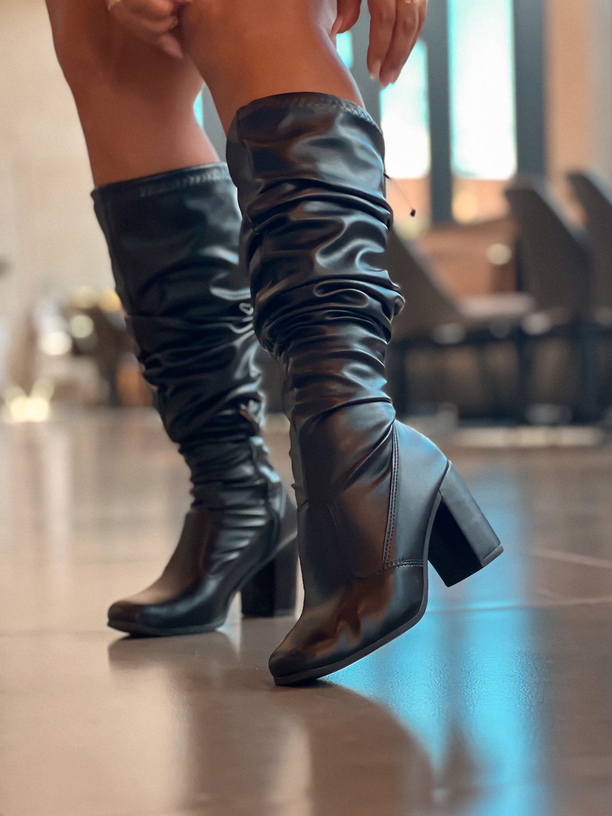 Bota over preta com salto bloco 8 cm. (Aconselhamos um número a mais. Ex: Calça n35 comprar n36)