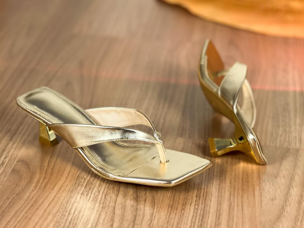 Tamanco dourado com salto dourado 6 cm