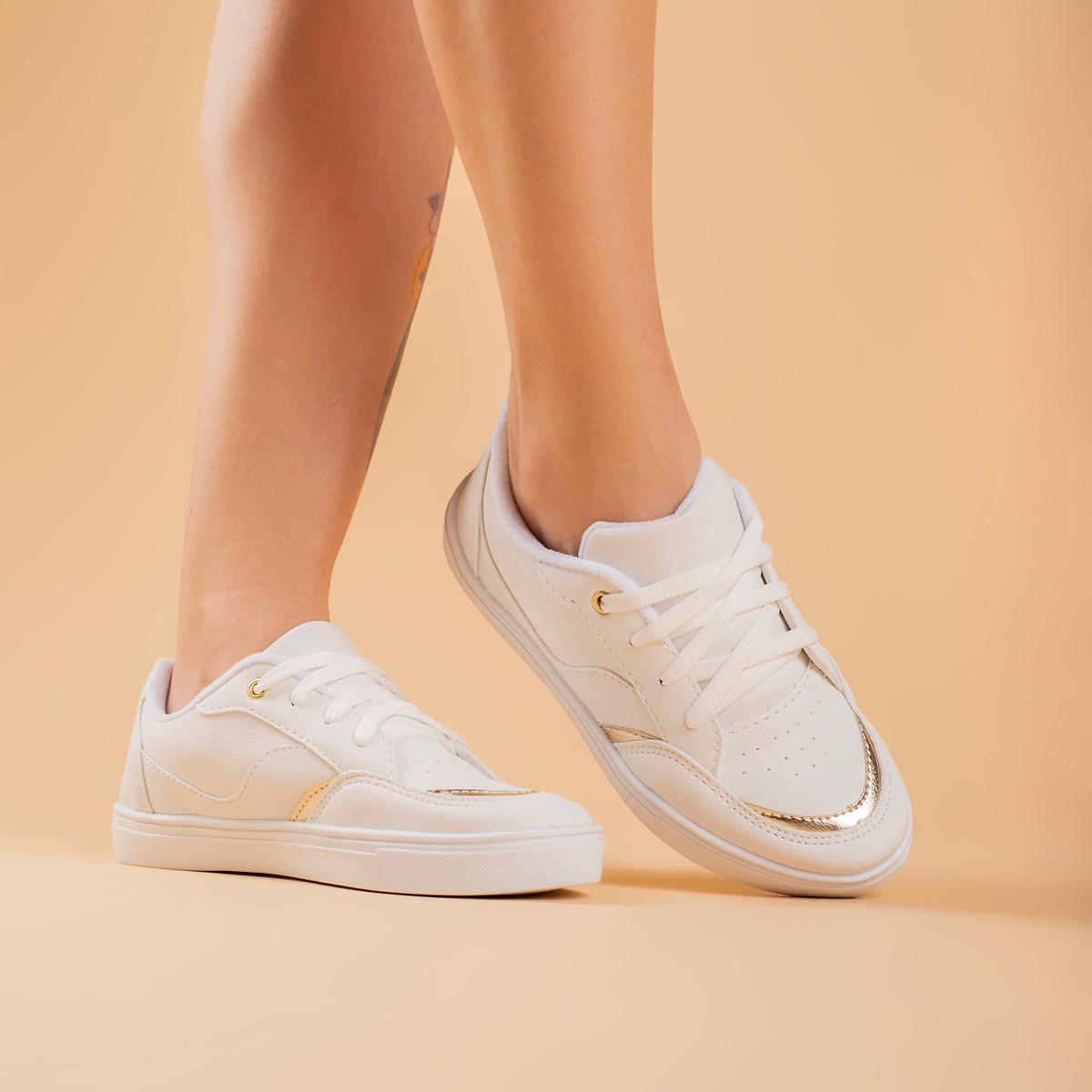 Tênis branco com detalhes dourado